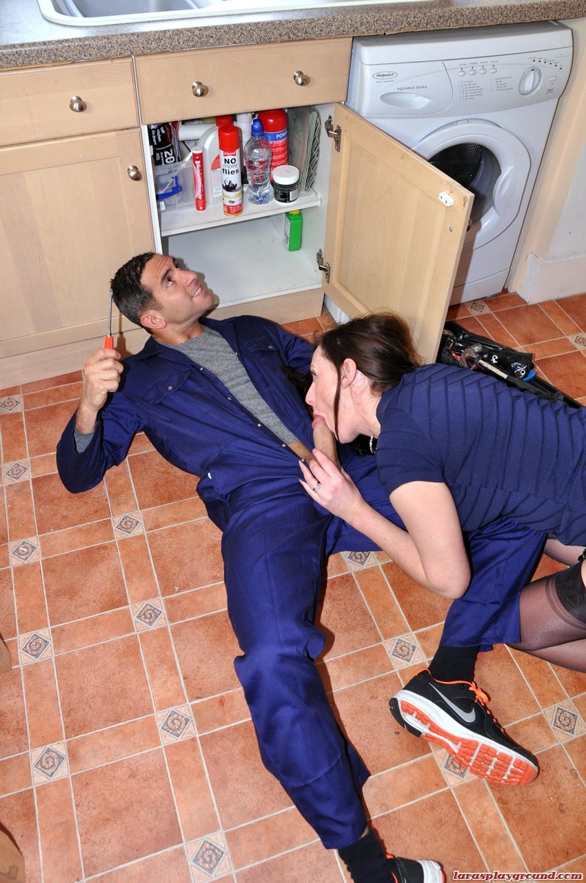 Пожилая женщина с проблемами с машиной и сантехникой берет его в задницу в качестве оплаты